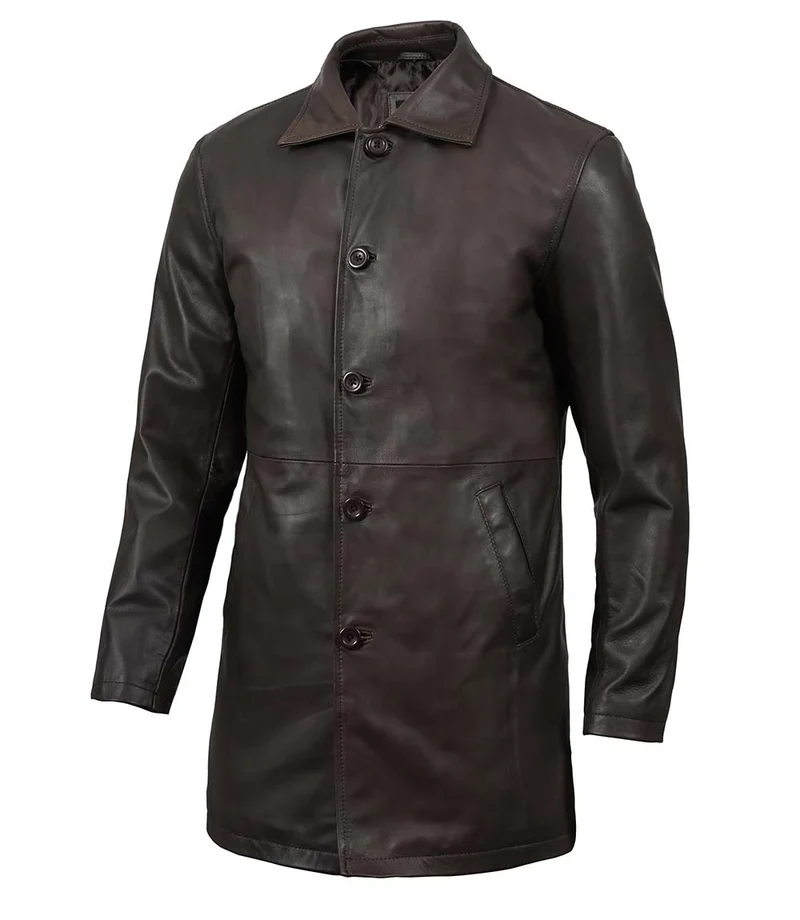 Embrace bold, timeless style with the Men’s Tall Distressed Dark Brown Leather Car Coat. Crafted from high-quality distressed leather, this car coat features a rugged, vintage appearance that stands out in any setting. Its tall design provides extra length for a comfortable, secure fit, while the slim-tailored cut ensures a sharp, modern look. Whether you’re layering up for a casual outing, attending a semi-formal event, or enjoying outdoor activities, this versatile coat offers unmatched warmth and durability. Shop now and elevate your outerwear collection with this essential leather car coat!